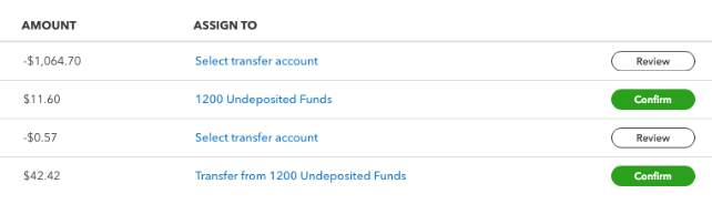 Seconly, under the tiles in the For Review section, there have been significant changes, too. While I like the bigger buttons in the Action column (notice how the column title has been removed), their new titles are confusing. The Confirm button especially will cause problems because the Assign To account suggested by QBO is probably wrong. The first reaction is to just click on this button when in reality, the downloaded transaction should be reviewed. I believe the Review button is suggesting an account previously used when adding a downloaded transaction. Both the Review and Confirm buttons really require the same actions from the user: to click and review the correct account, previously known as Add.
